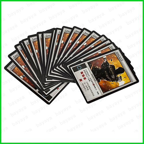 Bayaya Board Game Co., Ltd was established in 2010. We are a professional manufacturer and exporter specializing in design, production and development of playing cards, game cards, board games, trading cards, holographic cards etc. We are located in Guangdong province with a convenient access to transportation links. Our products are strictly compliant with international quality standards and have already good sales in European market through a variety of different channels.