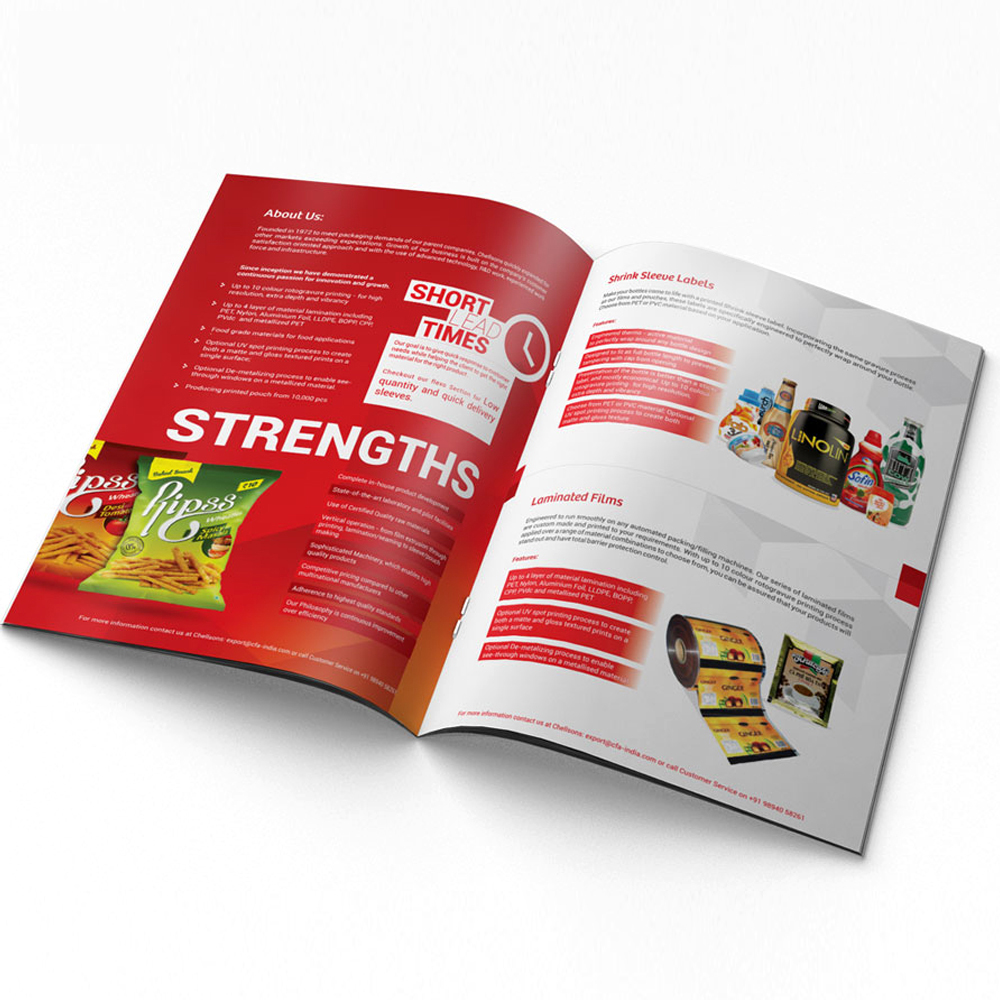 Packaging: brochure printing 100-200pcs wrapped with plastic film ,and then into cartons or as your requirment